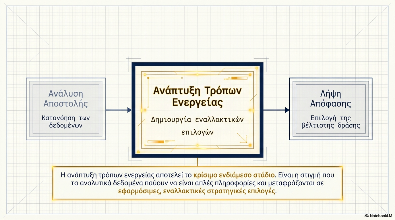 Η ανάπτυξη τρόπων ενεργείας αποτελεί το στάδιο στο οποίο η ανάλυση μετατρέπεται σε επιλογές.